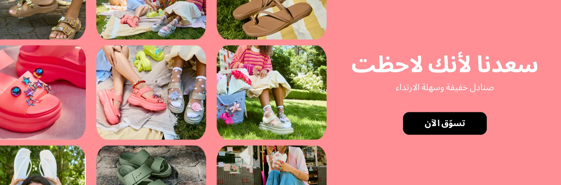 الصنادل والشباشبأياً كانت المناسبة، ستجد لدينا صنادل تناسب كل منها. فتجد كل موديل متعدد الاستخدامات بقدر ما هو مريح، ودائماً ما يواكب أحدث اتجاهات الموضة، ومتوفر في مجموعة متنوعة من الألوان والصور الظلية بما في ذلك الأربطة المتقاطعة والنعل السميك وفتحة الإصبع والشباشب وغيرها. تسوق عبر موقعنا الرسمي على الإنترنت لأكبر تشكيلة من الصنادل لكل أفراد عائلتك.
