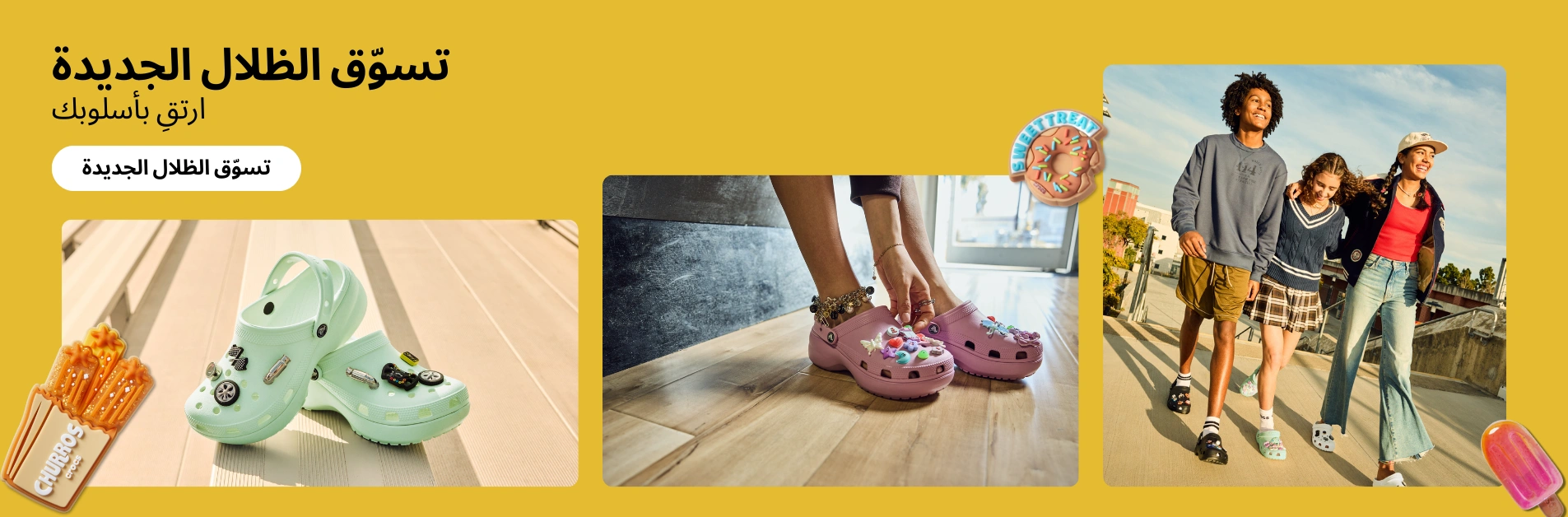 القباقيب والأحذية سهلة الارتداء الكلاسيكيةنظراً لكونها من أشهر وأكثر التصميمات شيوعاً من بين أحذيتنا، فإن القباقيب والأحذية سهلة الارتداء الكلاسيكية تأتي بأشكال متنوعة من الألوان والأنماط وتتميز بسهولة تنظيفها، فهي تمثل أساساً لتعاوننا الرائع. تستوعب القباقيب أيضاً خيارات لا حصر لها من التخصيص بفضل مجموعتنا المتغيرة باستمرار من طبعات إكسسوارات جيبيتز.